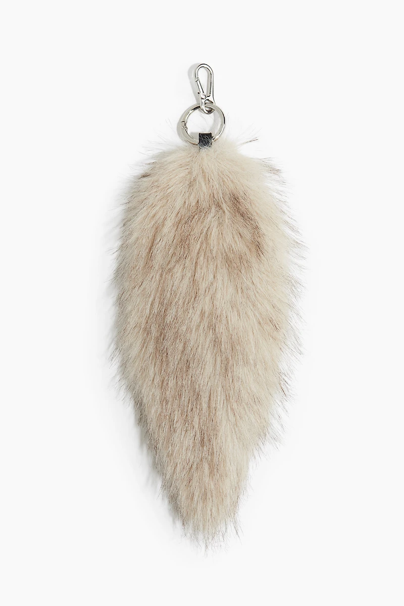 Décoration de sac constituée d'une chaîne en métal avec grand pendentif duveteux. Modèle muni d'un mousqueton permettant de l'attacher facilement à un sac.