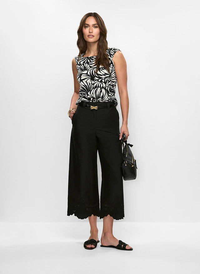 Graphic Floral Top & Embroidered Cropped Pants