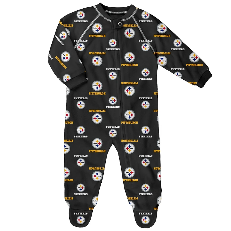 Grenouillère à imprimé raglan et fermeture éclair sur toute la surface noire pour nouveau-né nourrisson Pittsburgh Steelers