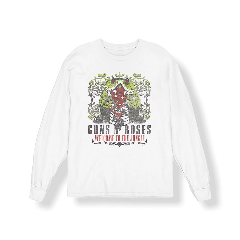 T-shirt homme manches longues avec poignets côtelés à la mode à imprimé sous license par Guns N' Roses. Fabriqué à partir de 100% coton doux, t-shirt à la mode est parfait pour toute occasion! Dessiné au Canada. Couleur: Blanc.