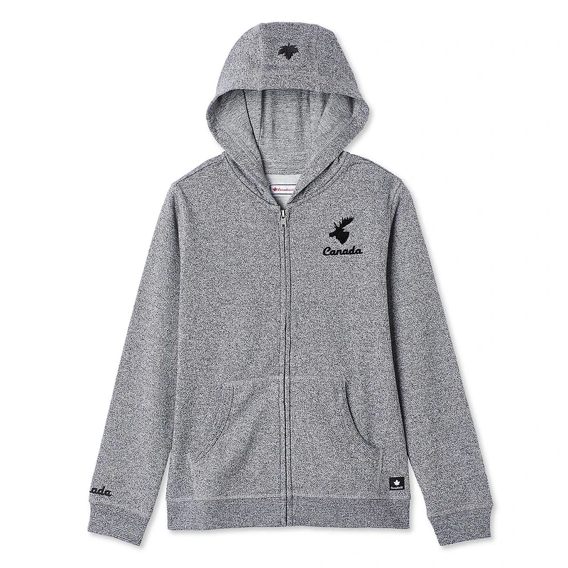 Haut à capuchon zippé sur la longueur Canadiana collection non genrée pour enfants