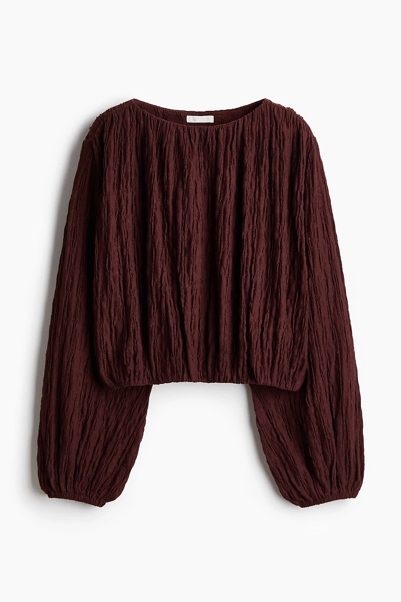 Haut en jersey texturé. Modèle avec encolure ronde et longues manches ballon. Petit élastique aux poignets et au bas.