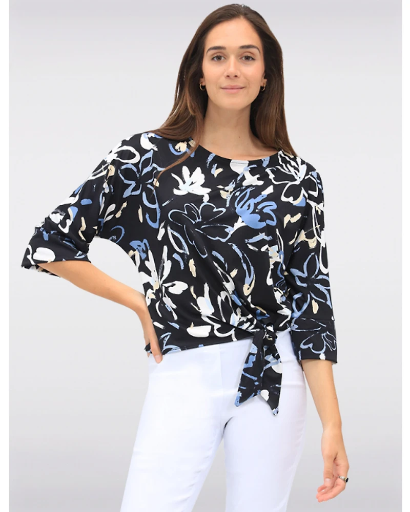 Haut à Nouer sur le Devant Extensible Imprimé à Col Rond & Manches 3/4 par GWV