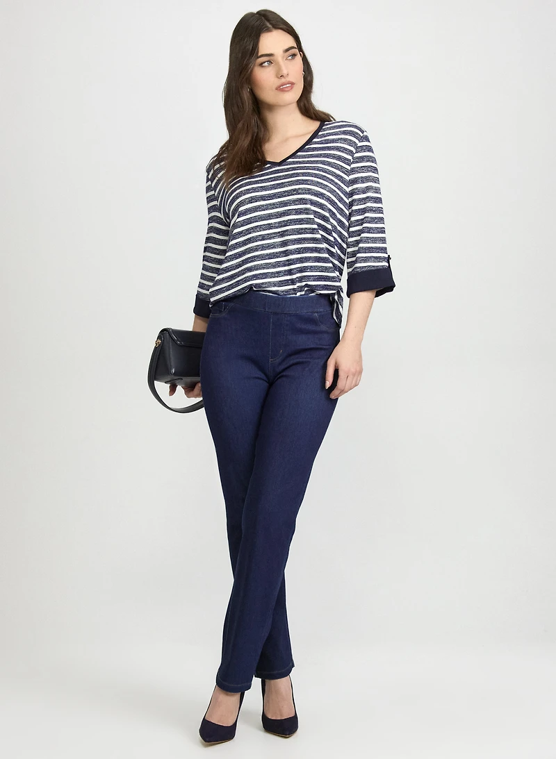 Haut à rayures en tricot et jean droit à enfiler