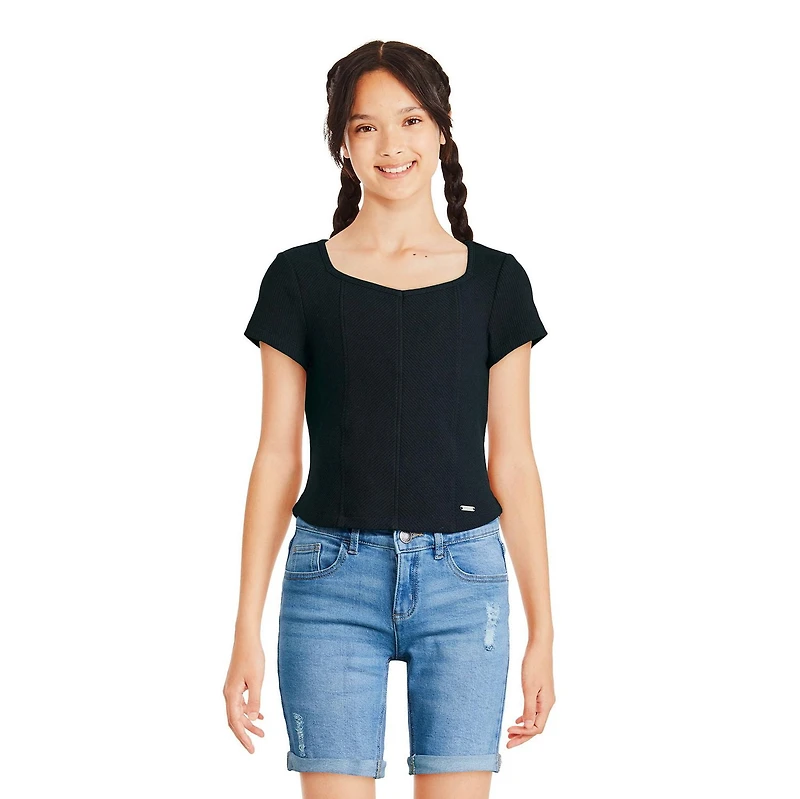 Le côtelé à encolure carrée Justice pour filles est un ajout polyvalent à sa garde-robe quotidienne. Il est conçu en tricot côtelé chiné dans un mélange riche en coton pour une coupe douce et extensible. Ce haut est doté d'une encolure carrée, de manches courtes et d'un ourlet arrondi pour un look classique. Agencez-le aux jeans, shorts et jupes pour une multitude d'options de tenues. Que ce soit pour aller à l'école ou pour passer du temps avec ses amis, ce haut veillera à ce qu’elle ait du style pendant toute la journée.