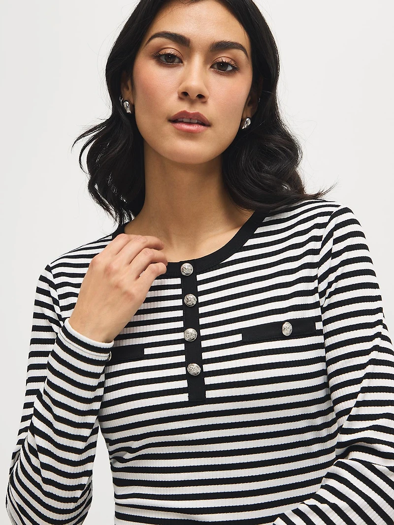 Haut côtelé à rayures et détails de boutons