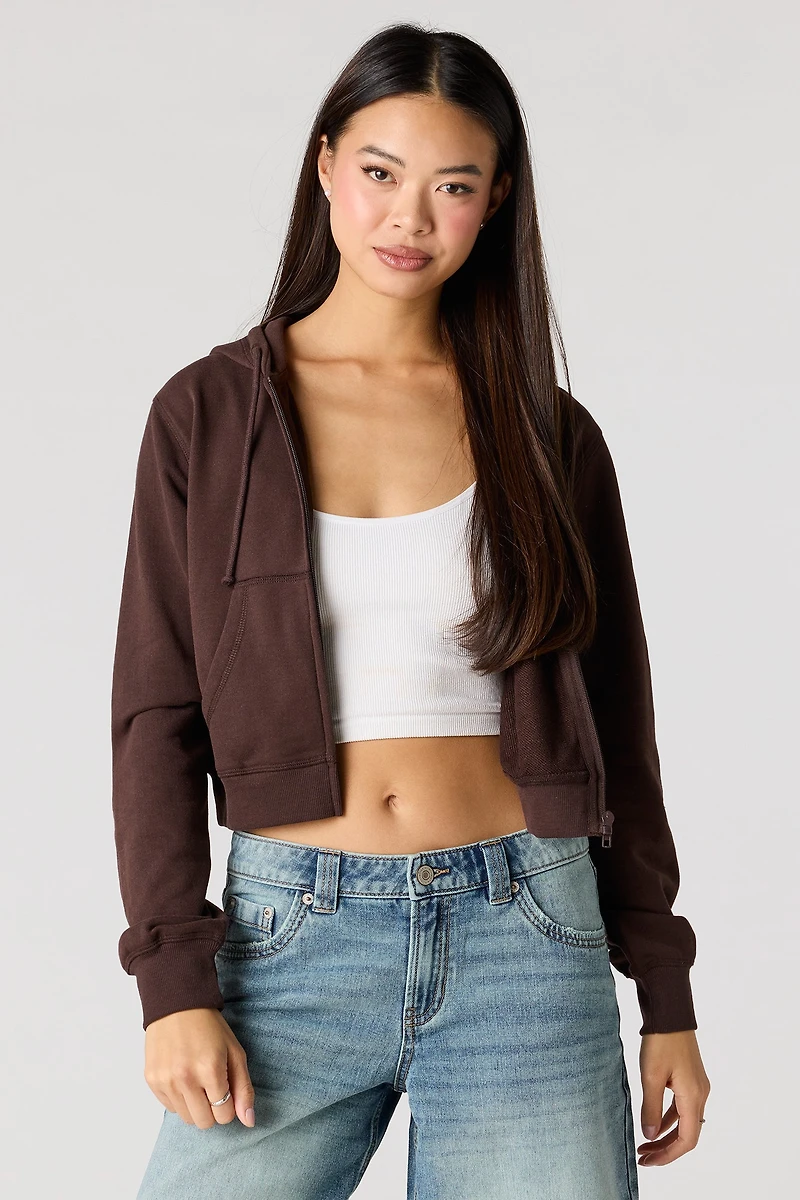 Haut court à capuchon en molleton avec fermeture glissière