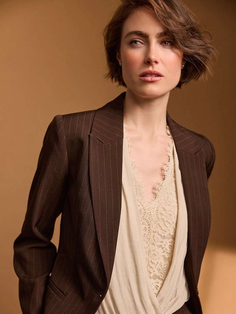 Haut croisé en dentelle à effet satiné