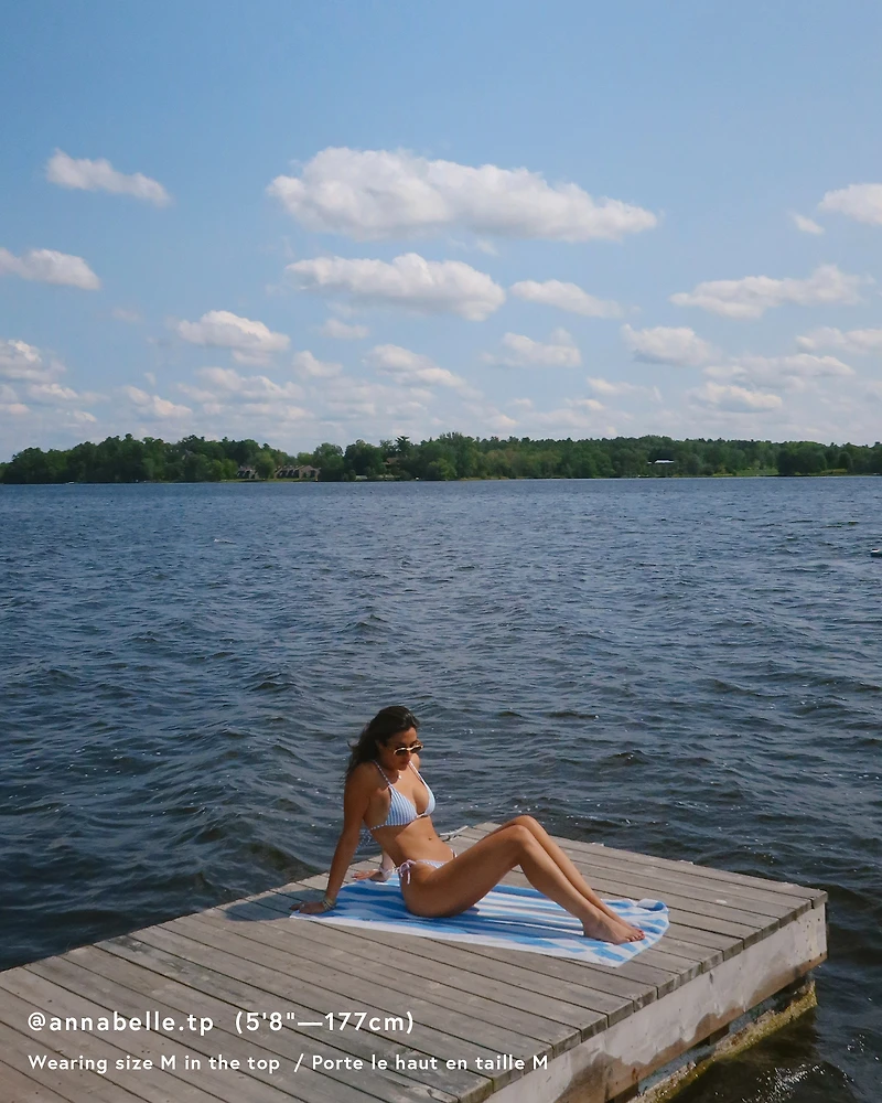 Rayures rétro à la marinière : le haut de bikini triangle Pacific Coast de Roxy sent bon les escapades en bord de mer. Inspiré des routes californiennes et des plages dorées, ce modèle à rayures bleu et blanc a tout d’un coup de cœur. Avec son tissu texturé et ses liens à nouer au cou et dans le dos, il s’adapte à toutes tes envies. Il offre un soutien léger tout en mettant en valeur ton décolleté en joli V.