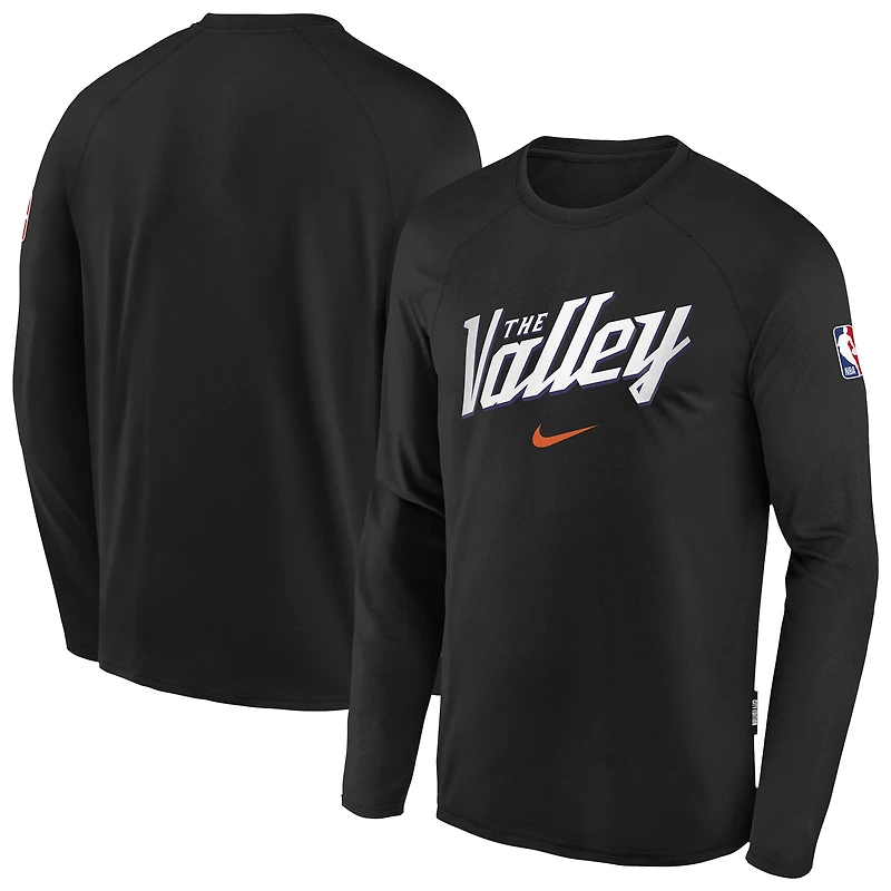 Haut de match Nike City Edition Dri-Fit à manches longues pour jeune homme, noir, Phoenix Suns NBA HO25 OST, modèle homme.