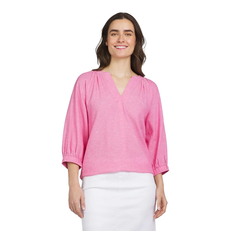 Haut en lin à manches aux coudes et col échancré pour femmes Chaps