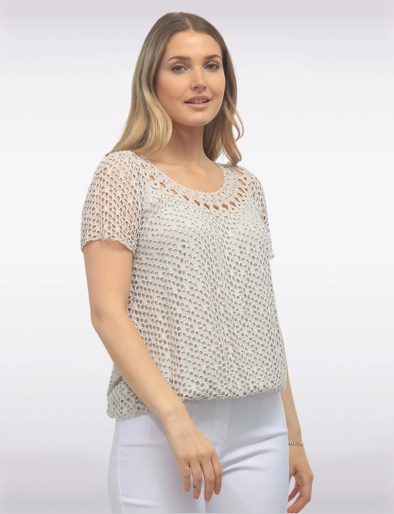 Haut En Maille Crochet Manches Courtes à Col Rond par Froccella