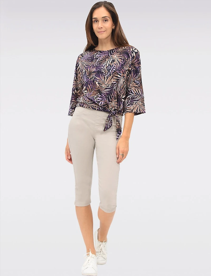 Haut Extensible à Imprimé Feuilles Tropicales Col Rond Manche 3/4 & Nœud par GWV