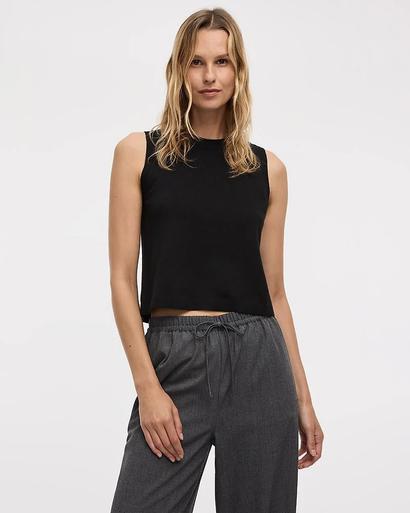 Un essentiel au quotidien, cet adorable haut sans manches à col rond est la pièce qu'il vous faut pour rehausser votre style cet été. - Tricot extensible - Coupe ajustée - Col rond - Sans manches - Longueur écourtée