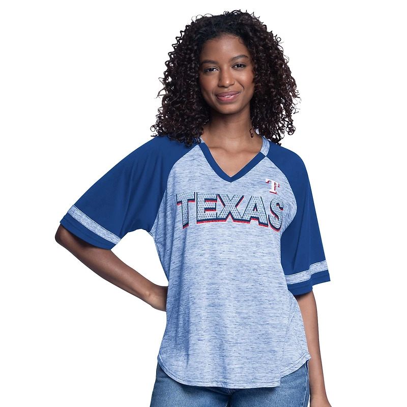 Haut surdimensionné à manches mi-longues et col en V G-III 4Her par Carl Banks Royal Texas Rangers Hall of Fame pour femme