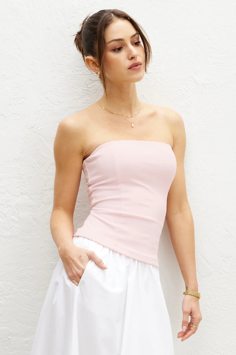Conçu de manière à offrir une silhouette ajustée, ce haut tube est confectionné dans un tissu en crêpe des plus légers. Agencez-le à un pantalon ou à une