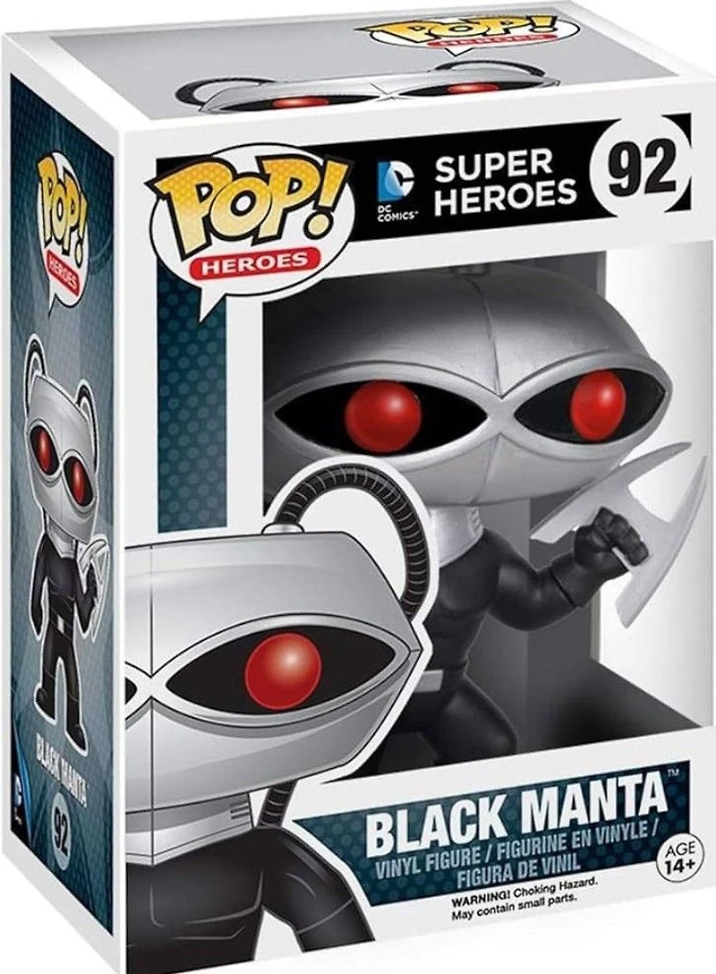 Type: Art Toys Brand: Funko Series: Pop! Heroes , Pop! Vinyl Reference #: 92 Released: 2016 Related Subjects: Black Manta (David Hyde) , DC Entertainment