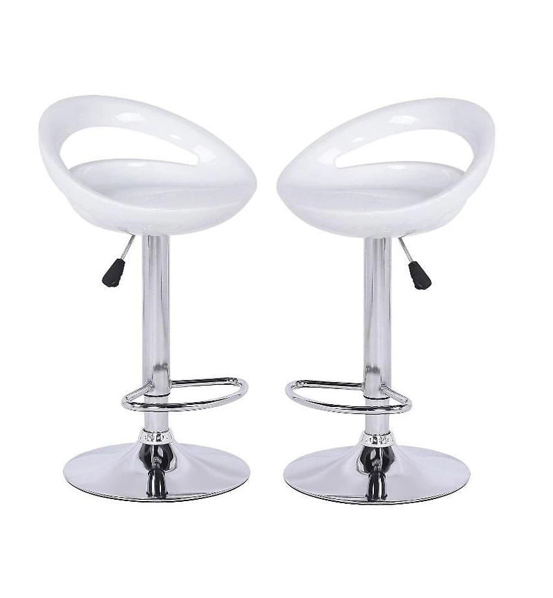 Heavenly Collection Tabouret rond blanc, tabouret réglable blanc, tabouret en plastique blanc, tabouret blanc brillant avec base en acier inoxydable, tabouret blanc à dossier bas avec repose-pieds, ta