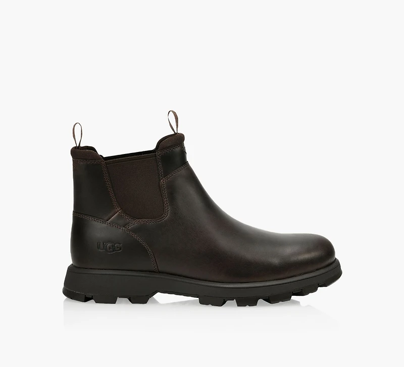 Élégante et fonctionnelle, cette botte classique est faite de cuir imperméable à coutures scellées. L'intérieur est doublé d'un mélange de laine signature UGGplush pour plus de chaleur, et l'extérieur est fini avec la semelle extérieure Vibram durable pour une traction exceptionnelle.