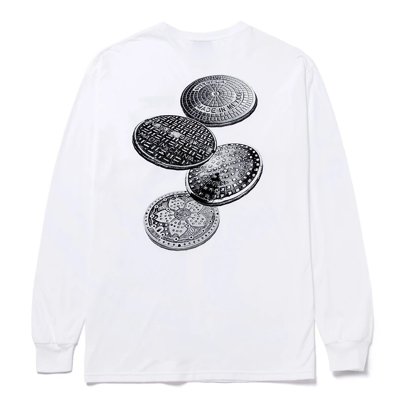 Sweat blanc uni à manches longues. Logo et gros visuel imprimé à l'avant et à l'arrière