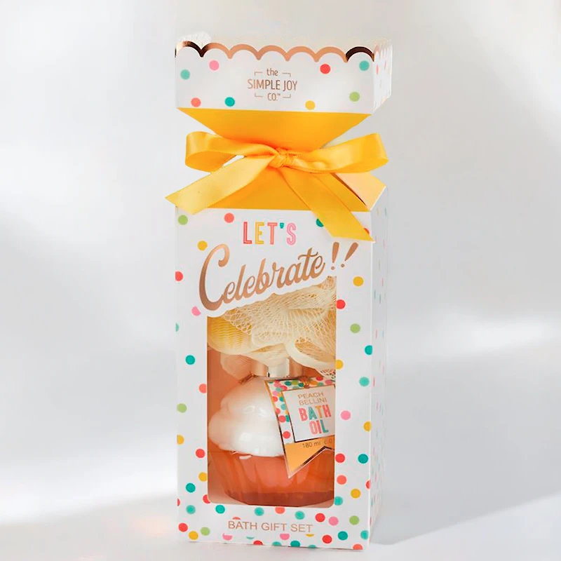 Offrez un moment de détente avec ce coffret de bain festif. Il contient une huile de bain parfumée apaisante dans un flacon en forme de cupcake et une éponge en filet colorée. Parfait pour se relaxer ou faire un joli cadeau.