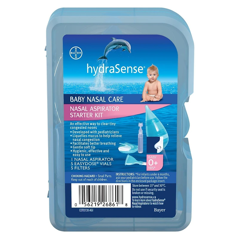 Créé par des pédiatres pour nettoyer rapidement, efficacement et en douceur le nez congestionné de votre bébé. Le Mouche bébé hydraSense est hygiénique, efficace et facile à utiliser grâce à son embout souple sans BPA; à utiliser chez les nouveau-nés, les nourrissons et les tout-petits, comme indiqué. Aide votre bébé à mieux respirer pour qu’il puisse mieux dormir et se nourrir. Offert dans une trousse pratique de voyage ou de transport. La trousse comprend 1 Mouche bébé, 5 fioles Simplidose et 5 filtres à usage unique. Le Mouche bébé hydraSense est le 1er choix des mamans au Canada*. (*Données internes)