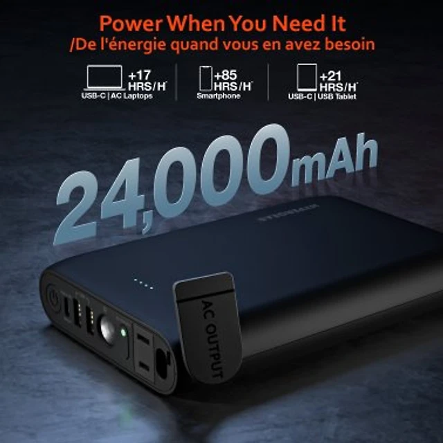 HyperGear 24,000mAh 65W USB-C & A/C Outlet Power Brick Laptop Power Bank