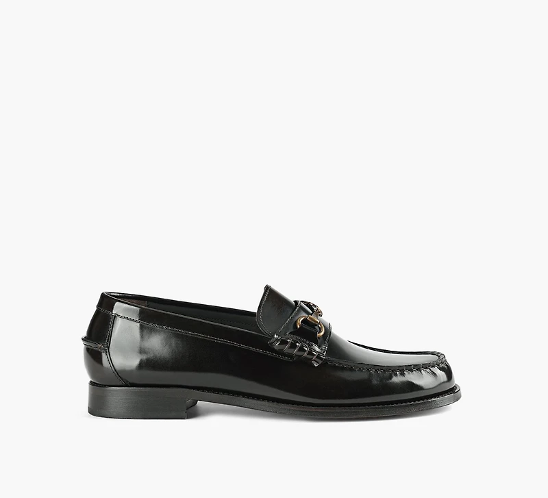 On pourrait en dire long sur le flâneur classique à bride : son statut de pièce incontournable, pour commencer. C’est pourquoi LUCA DEL FORTE revisite ce modèle iconique avec l’Ignacio. Confectionnée en cuir brillant et robuste, cette paire présente des surpiqûres froncées sur l’empeigne et le talon. Fidèle à la silhouette penny, elle est agrémentée d’une bride élégante ornée d’un mors métallique à la finition vieilli.