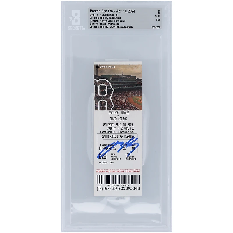 Jackson Holliday Baltimore Orioles a dédicacé le billet authentifié pour ses débuts en MLB, dont les fans de Beckett ont été témoins
