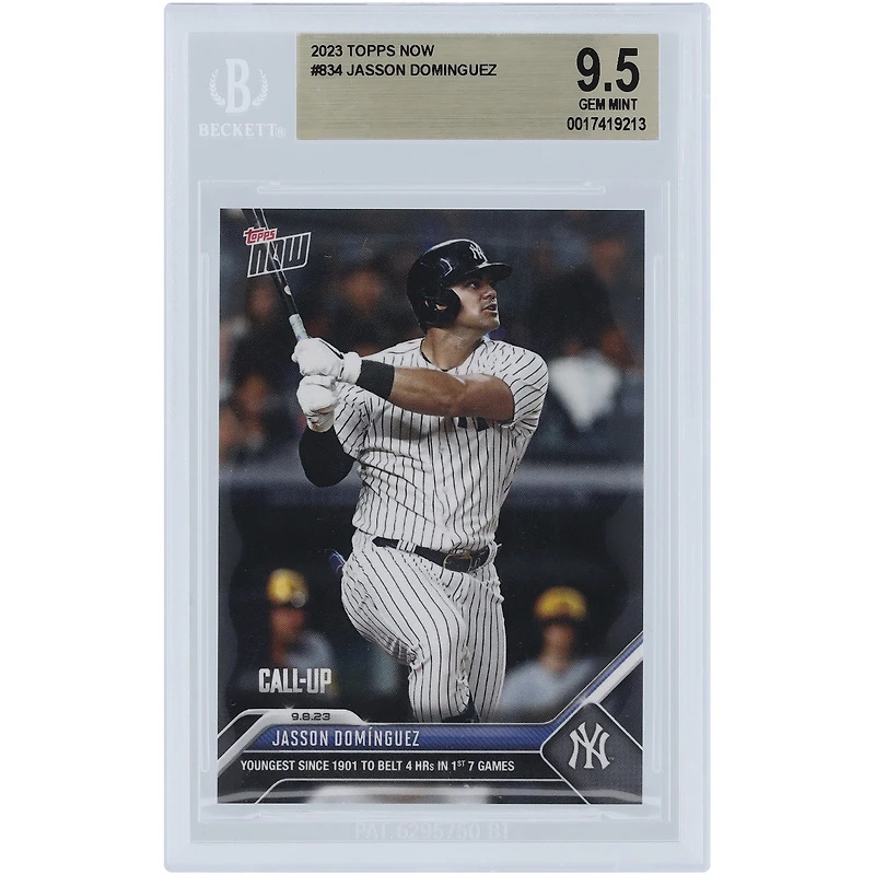 Jasson Domínguez New York Yankees 2023 Topps Now Youngest Since 1901 to Belt 4 HRs in 1st 7 Games #834 BGS Authenticated 9.5 Rookie CardJasson Domínguez New York Yankees 2023 Topps Now Youngest Since 1901 to Belt 4 HRs in 1st 7 Games #834 BGS Authenticated 9.5 Rookie CardJasson Domínguez New York Yankees 2023 Topps Now Youngest Since 1901 to Belt 4 HRs in 1st 7 Games #834 BGS Authenticated 9.5 Rookie Card