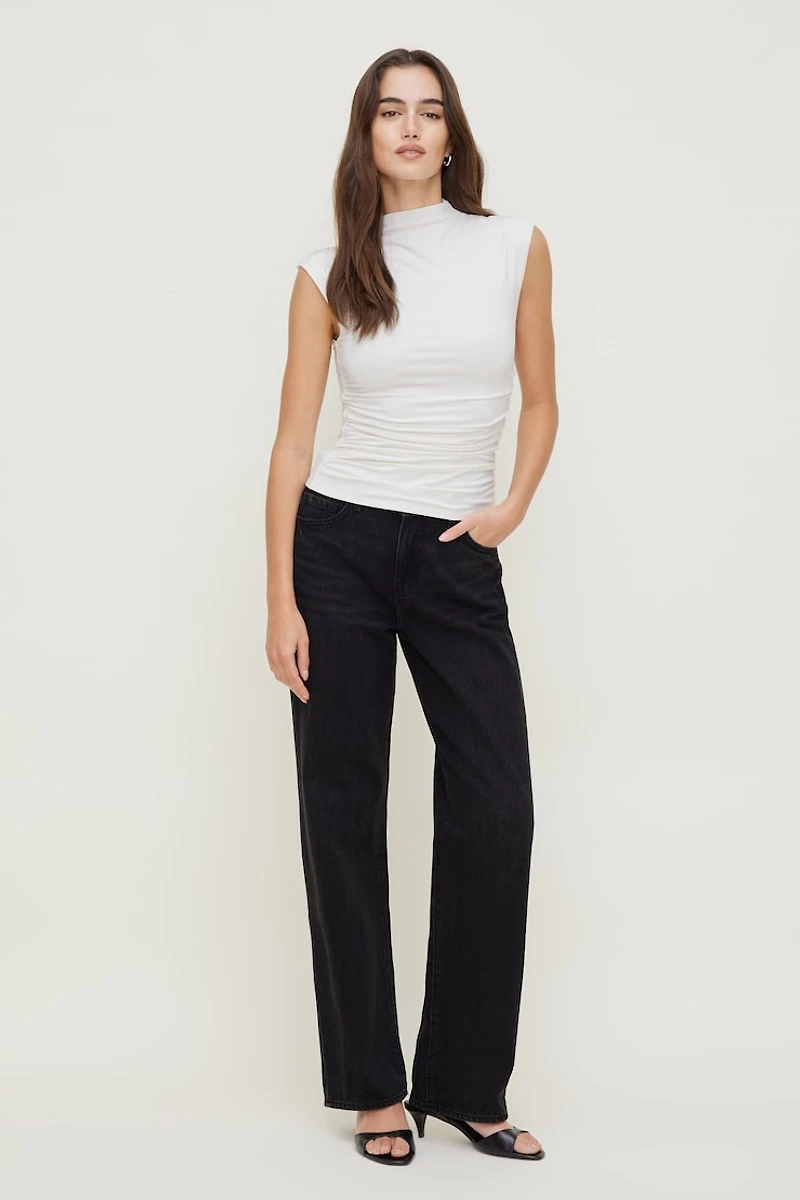 Jean Mika à taille mi-haute et jambe droite décontractée