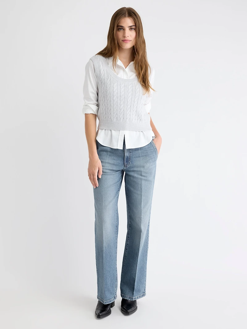 Doté d'une confortable taille mi-haute et d'une jambe large qui saura se démarquer, ce jean est sans aucun doute un essentiel à ajouter à votre garde-robe cette saison. Portez-le avec un talon, une espadrille ou une botte pour un style personnalisé. Coupe - Jambe large - Taille mi-haute - Longueur 32'' (taille 29) Caractéristiques - Denim légèrement extensible - Braguette à glissière avec agrafe - Passants de ceinture - Poches de biais à l'avant et poches appliquées au dos