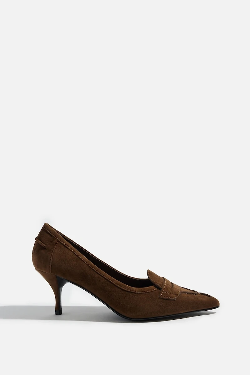 Des escarpins en suède de type flâneur qui confèrent un look sophistiqué et féminin.