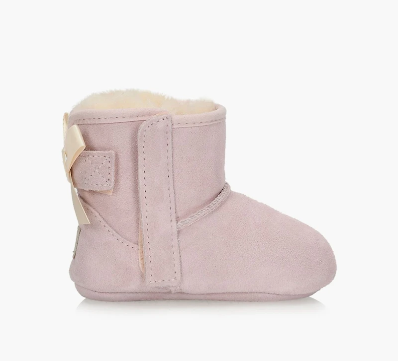 Une version miniature de la botte classique, Jesse Bow est fabriquée en suède doux avec un ruban de satin et une doublure en peluche en laine recyclée pour garder les petits pieds bien au chaud. Une fermeture velcro permet de l'enfiler et de l'enlever facilement, tandis que la semelle en caoutchouc facilite les premiers pas.