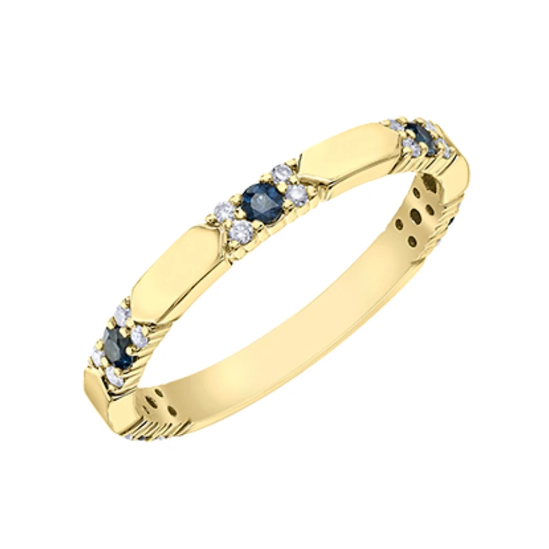 Jonc en or jaune 10k serti de saphirs et de diamants. Ce jonc est serti de :