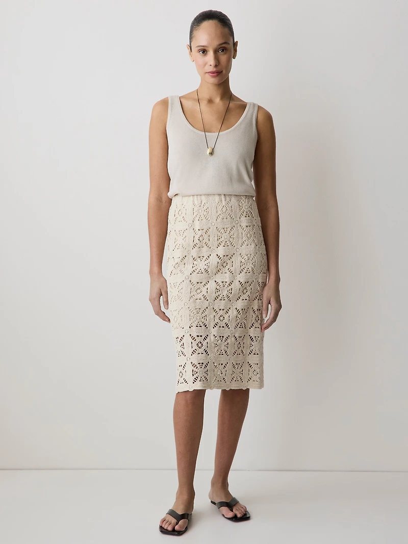 Jupe Droite Midi en Tricot Crocheté
