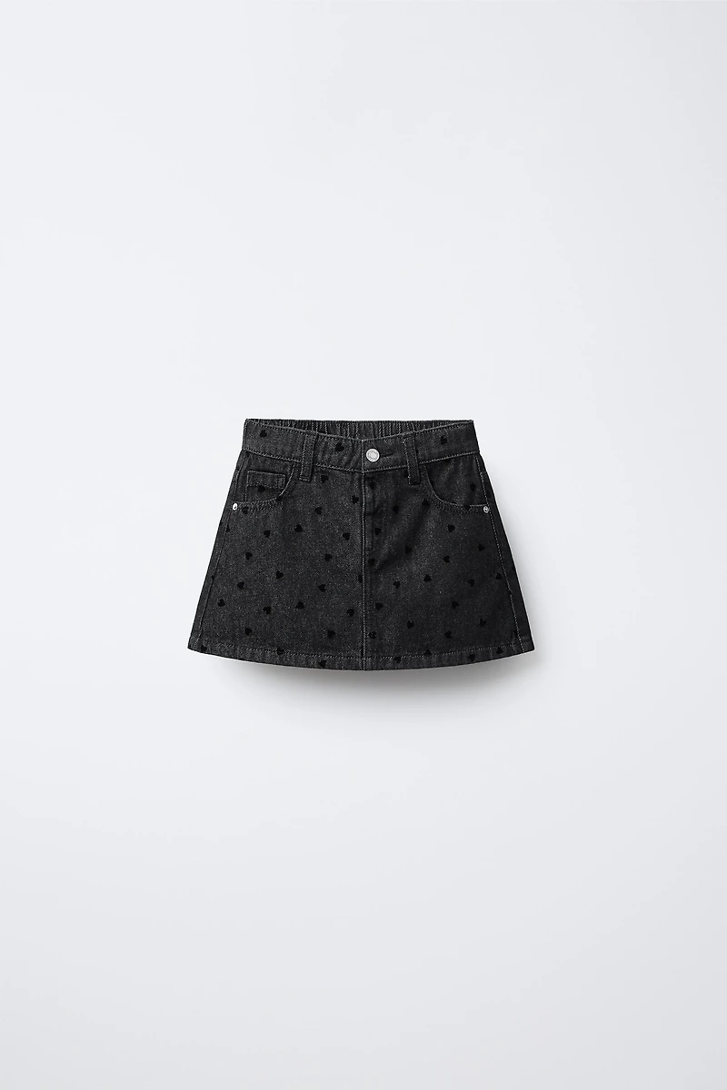 JUPE EN JEAN CŒURS FLOQUÉS