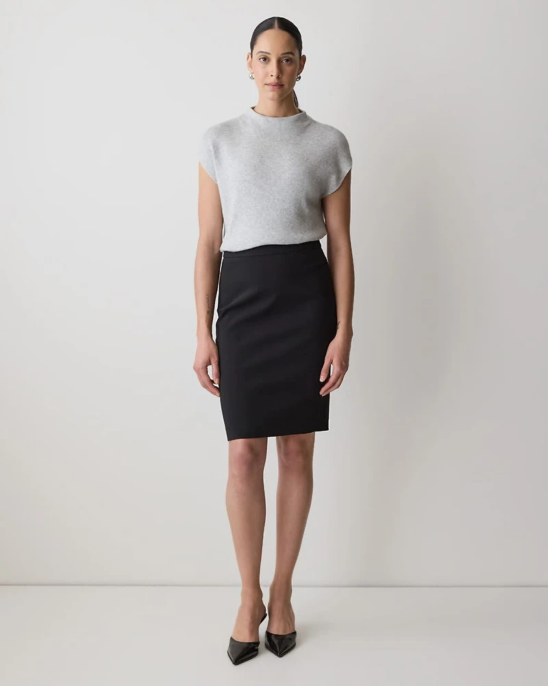 Idéale pour un style soigné au bureau, cette jupe fourreau noire est conçue dans un tissu extensible si confortable que vous voudrez la porter tous les jours. Coupe - Coupe fourreau - Taille haute - Longueur du corps au dos de 24'' (taille 8) Caractéristiques - Maille tissée extensible : contient 44 % de polyester recyclé* - Doublure extensible - Fermeture à glissière invisible au dos - Fente au dos * Ce vêtement contient du polyester recyclé fabriqué à partir d'un mélange de bouteilles et de déchets de tissus.