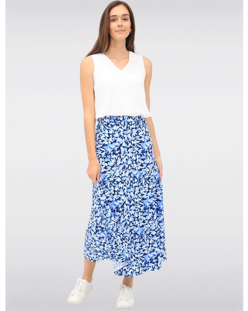 Jupe Longue à Fleurs Évasée Extensible avec Taille Élastique par Vamp