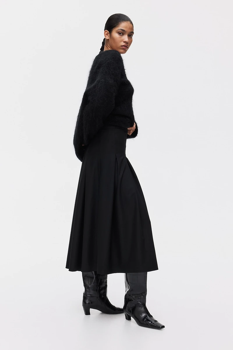 Jupe à mi-mollet en matière tissée avec plis tout autour pour une silhouette volumineuse. Coupe flottante avec taille haute et fermeture par agrafe et fermeture éclair dissimulées sur un côté. Non doublée.