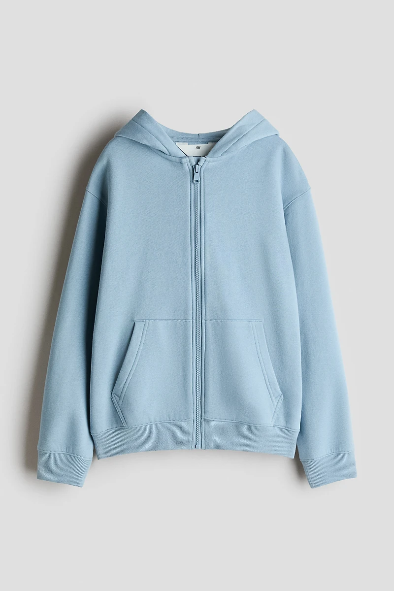 Veste en molleton à l'intérieur doux et brossé. Modèle avec capuchon doublé, emmanchures descendues et fermeture éclair devant. Poches devant. Ourlet côtelé aux poignets et au bas.