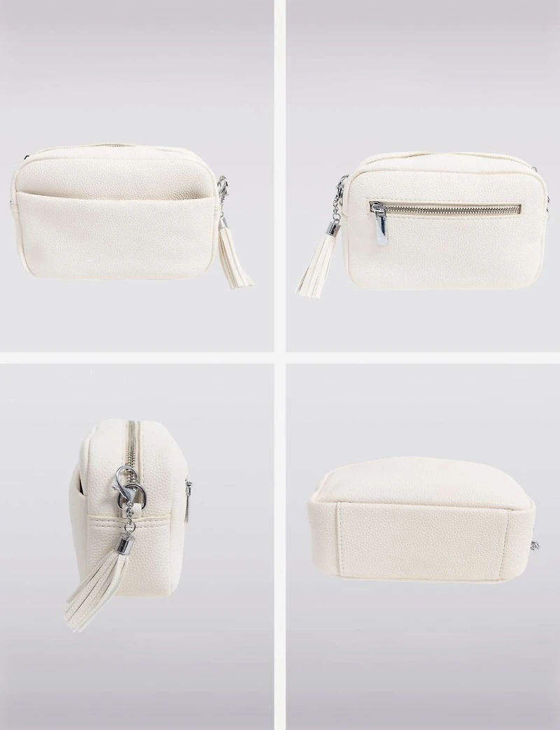 - Équipé d'un matériel en argent élégant et d'un pompon en cuir végétalien assorti pour une finition chic