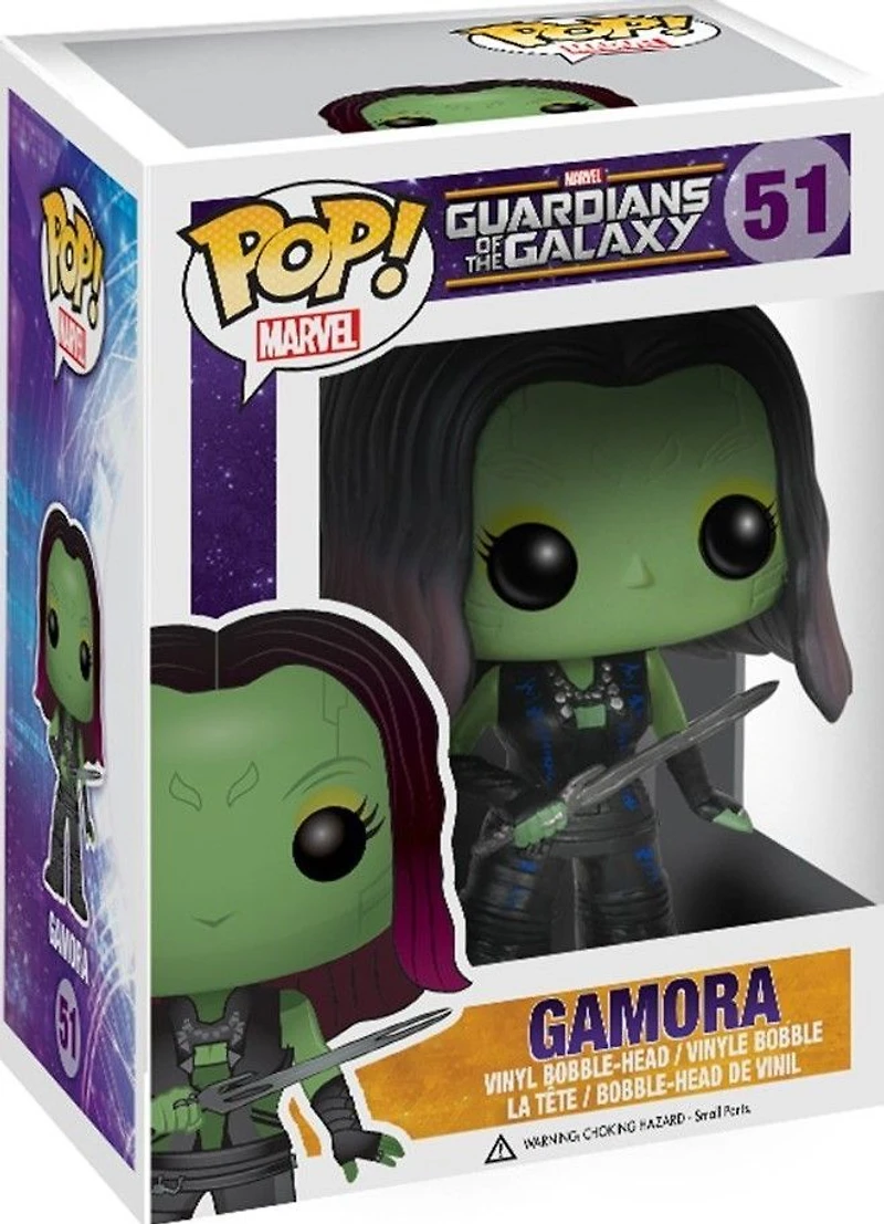 Type: Art Toys Brand: Funko Series: Pop! Vinyl , Pop! Marvel Reference #: 51 Released: 2014 Related Subjects: Gamora (Gamora Zen Whoberi Ben Titan) , Guardians of the Galaxy , Guardians of the Galaxy Vol. 2 , Marvel , Zoë Saldaña
