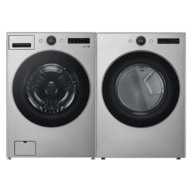 Laveuse à vapeur à chargement frontal haute efficacité de 5,2 pi³ et sécheuse électrique de 7,4 pi³ de LG - Acier graphite