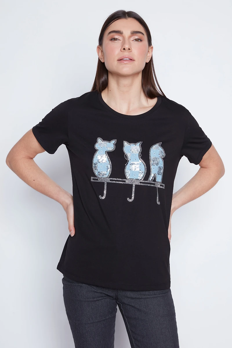 Adoptez un style irrésistible avec ce charmant t-shirt à trois chats signé Ness. Orné de trois adorables félins dans un motif ludique, ce modèle à manches courtes est un indispensable doté d'une encolure ronde décontractée et d'un coton doux aussi agréable au toucher qu'à la vue. Parfait pour les amoureux des chats qui veulent afficher leur passion avec style. Confort et personnalité garantis.
