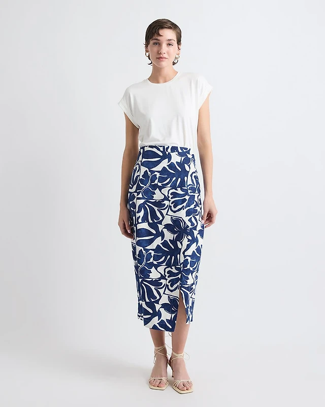 Linen-Blend Straight Midi Skirt with Wrap Front