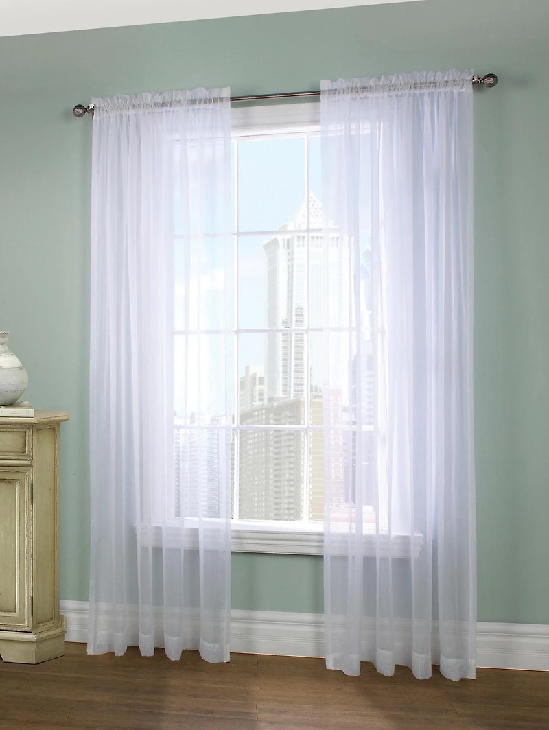 Loft Living Vizby, paire de panneaux de rideaux style européen transparent à passe à tringle 56" x 95", blanc