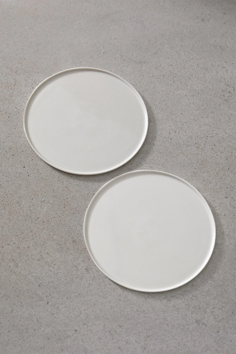 Assiettes plates en porcelaine rondes, finition double : intérieur brillant et extérieur mat.