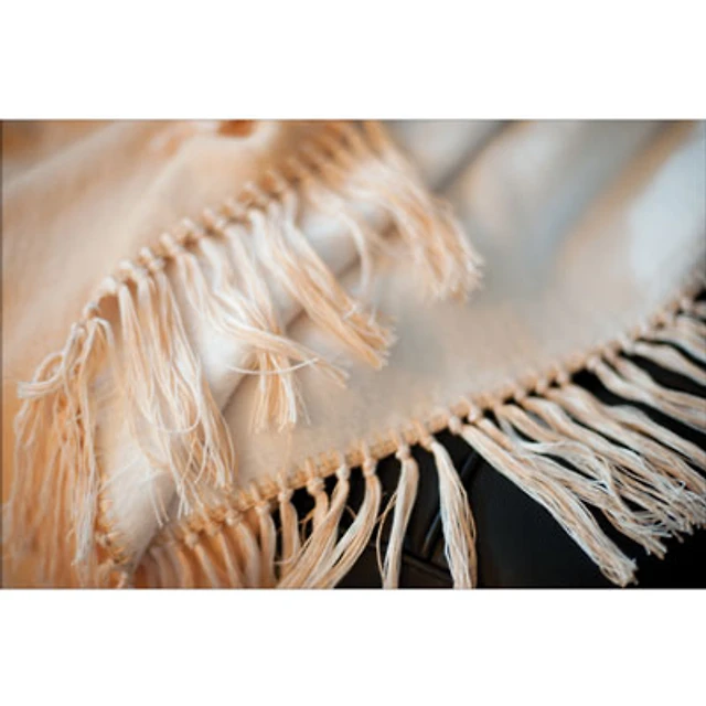 Luxeport Bamboo Rayon Fringed Throw - Ivory/Camel