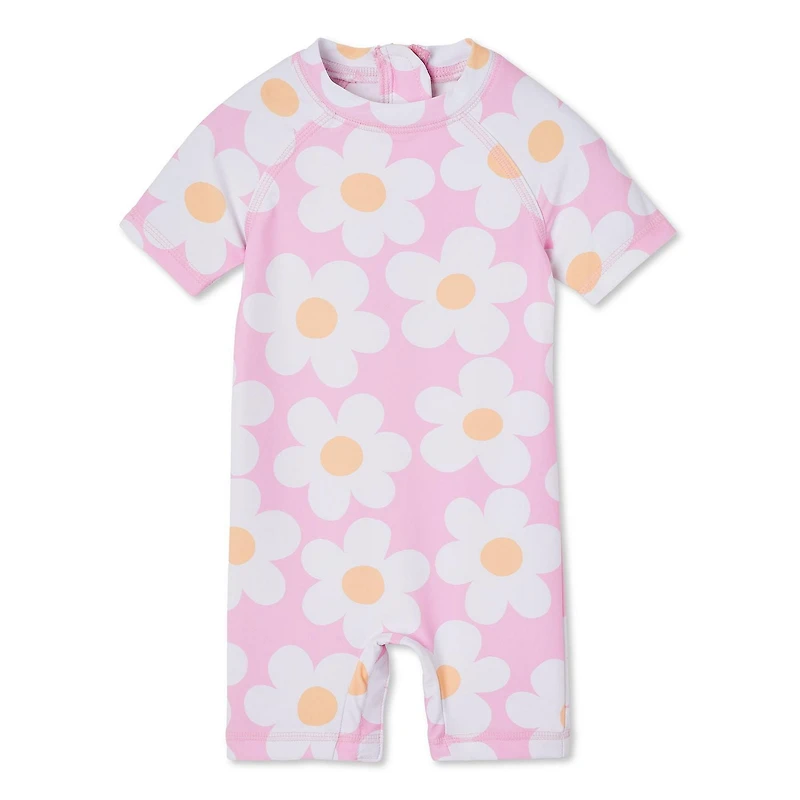 Aidez à protéger votre petite fille du soleil avec le maillot de bain 1 pièce anti-UV George pour bébés filles. Fabriqué en tissu extensible quadridirectionnel, il offre une protection FPU 50. Le maillot de bain d’une pièce est conçu avec une encolure ras du cou, des manches raglan courtes, un adorable imprimé intégral, une fermeture éclair au dos et une sangle avec crochet à l’entrejambe pour un habillage facile. Parfait pour une journée à la plage ou à la piscine, elle pourra le porter avec ses petits flottants.
